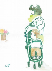 挿絵をつけて文章と一緒に展示をします。
