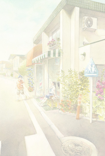 建物やそこに暮らす人々の様子を、やわらかく描きます。