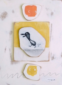 今回の作品でも木の板を支持体に